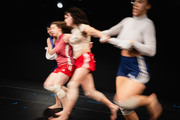 "Grit is an evening-length experimental dance work made in collaboration with four performers, crafted primarily through improvisational scores and instant composition structures. The project interrogates the underbelly of achievement by examining the isolating costs of competitive drive — particularly how rigor, ambition, and endurance can fracture collective care. By blurring the line between exhaustive pleasure and exhaustive pressure, the work asks what happens when intensity is no longer sustainable, and what new forms of connection can emerge from its unraveling."